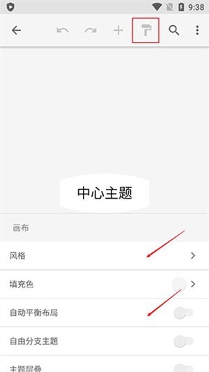 2、系统会给你一个最简单的一个主题,点击红色方框内的标识,将会出现更换风格、填充色等设置。