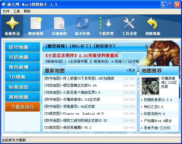 您可以在这个迷你版游久War3站首页上看到最新地图及常用地图。左侧的地图分类可以直接跳转至相应分类的地图排行,更直观的找你想要找的地图。