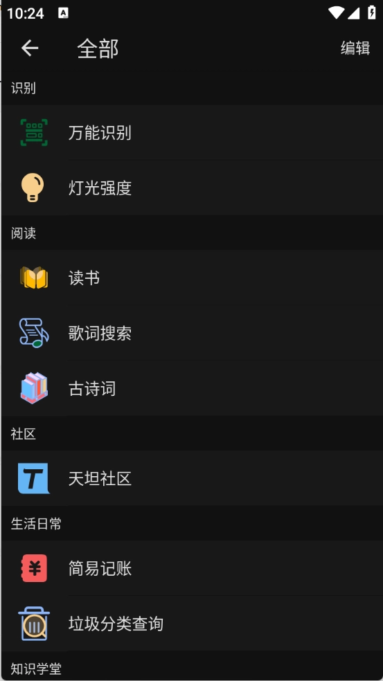 进入首页后,这里包含了读书、扫描识别、记账等多种实用工具及功能。