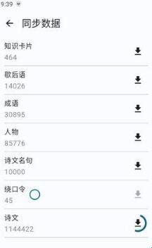 因为诗文数据总量已超110万,数据规模较大,解压完成后需分批次导入(这样做是为了解决并避免导入过程中手机内存分配出现错误的问题)。每次等右侧的进度条停止运行后,再选择下一组数据进行导入,建议大家选择空闲的时间段来完成同步操作。