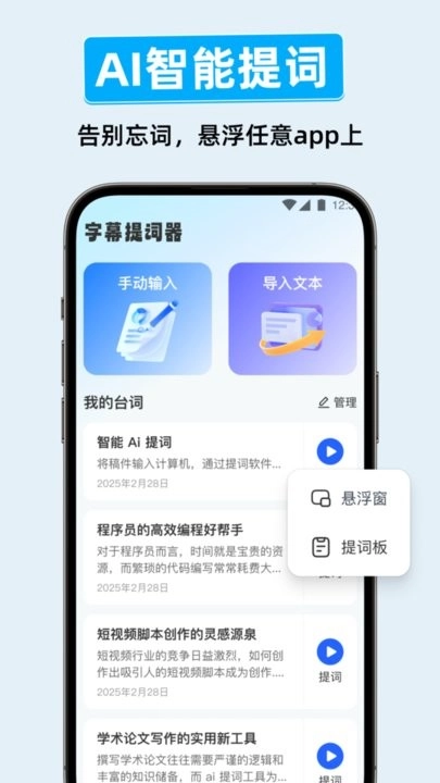 支持直接通过文本形式导入提词内容,这样能更高效地进行台词编辑工作,从而节省更多录入台词所花费的时间。