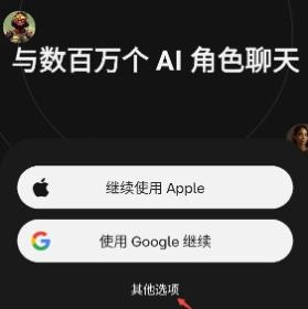 1.启动软件后,可选择通过苹果账户或谷歌账户进行登录;若没有上述两种账户,可点击下方的其他选项。