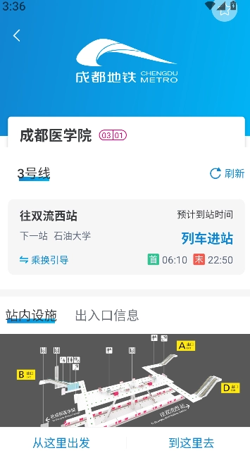 《成都地铁》是一款聚焦城市出行场景的交通应用,核心服务围绕地铁查询与乘车辅助展开。用户借助实时线路图、换乘规划及发车时间查询功能,能在出行前迅速获取路线信息。应用内设有票务入口、运营公告与站点信息说明,便于及时掌握各线路运行动态;站点周边信息呈现清晰,可查看附近道路及方位指引。其操作流程简洁、功能布局明确,适用于日常通勤、临时出行及线路查询等多种场景,是地铁出行的实用工具。