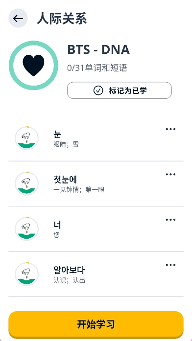 5. 点击“开始”按钮进行学习,待掌握相关知识点后,将其标记为“我已经学过了”。