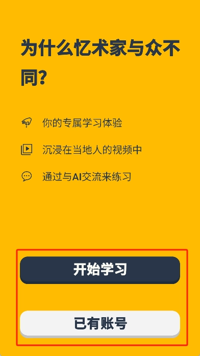 2. 打开应用程序,可选择用已有账号登录,也能点击“开始学习”按钮来创建新账号。