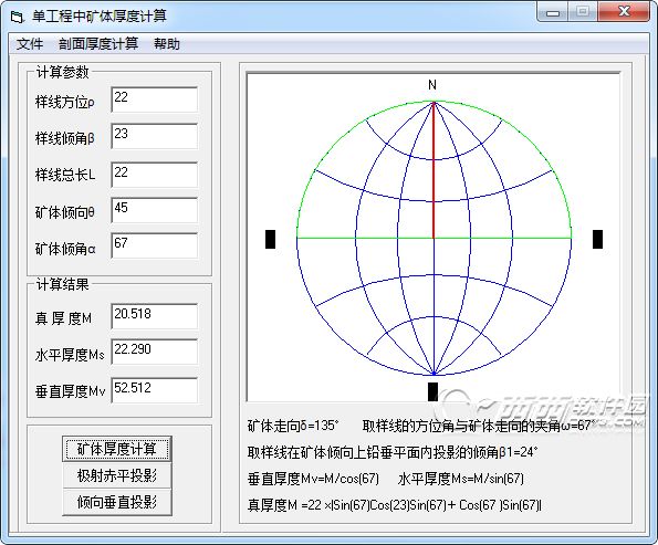 M垂厚=l×cos (β-α)/ cosβ