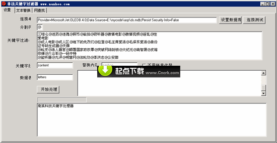 主要功能: 1.可以对数据库进行查找,看你的数据库里面是否有非法关键字并进行数据库替(可替换成拼音,或者自定义的字)