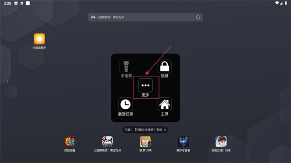 2、点击小白点浮窗,在功能栏中选择【更多】选项,以此展开更多快捷操作入口。