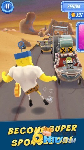 3、为你的海绵宝宝注入力量,助他化身超级英雄,驾驭各类载具,体验飞跃的畅快!
