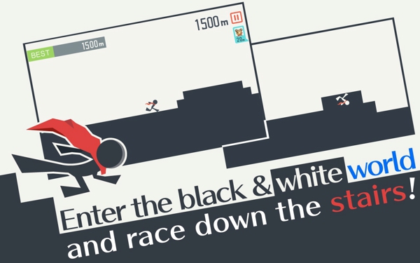 操作超简单!在屏幕上点击,并从一个侧面去到另一边。只是不停地跑下来的楼梯!