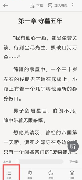 3、在阅读界面轻点屏幕,弹出菜单后选择“目录”。