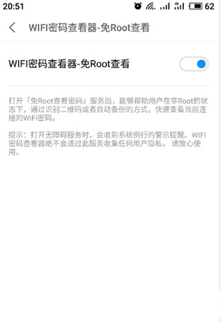 6、点击查看,即可看到wifi密码查看器免root功能已处于开启状态。