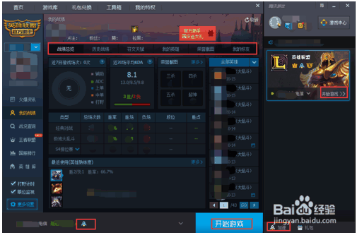 4、点击这个游戏图标,会进入当前账号的所在服,里面的一些信息就显示在软件界面。如近期的对战信息等。