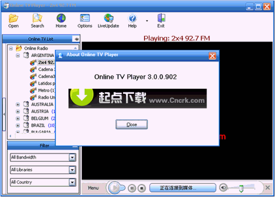 Online TV Player V4.0.0.0 英文绿色免费版 Online TV Player让你在你的电脑上观看超过850个免费互联网电视和收听超过1500个免费在线广播。 它允许观看者直接观看电视而不会体会到网站的干扰(例如缓慢下载页面和弹出广告等)。 无须附加设备,无月费,无额外费用。Online TV Player支持Windows Media和Real Video,你可以在此程序中播放大多数流媒体。