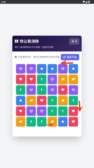 1、只需滑动手指连接相同图案,只要达到最低数量要求,就能让它们瞬间消除。