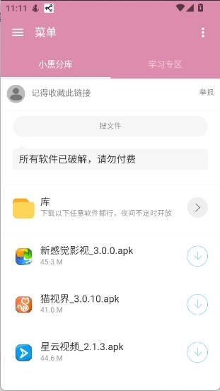 小黑分库1是一款功能十分强大的迷你资源搜索合集。这款小黑分库1的apk不仅能为大家提供众多优质的软件资源,小黑分库1软件里还收录了海量精品影视资源;而且它没有任何套路,也完全免费,大家直接在小黑分库1里搜索自己需要的资源就可以啦!