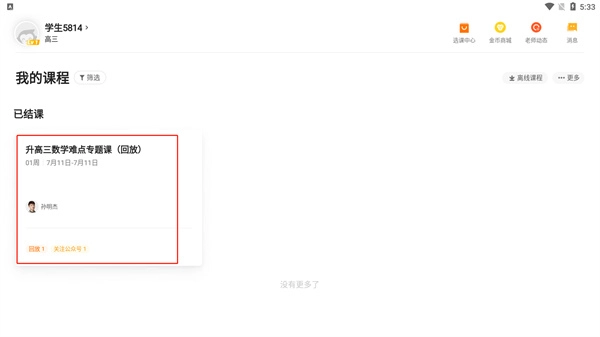 5、回到主界面就能看到我的课程,点击进入就能查看;