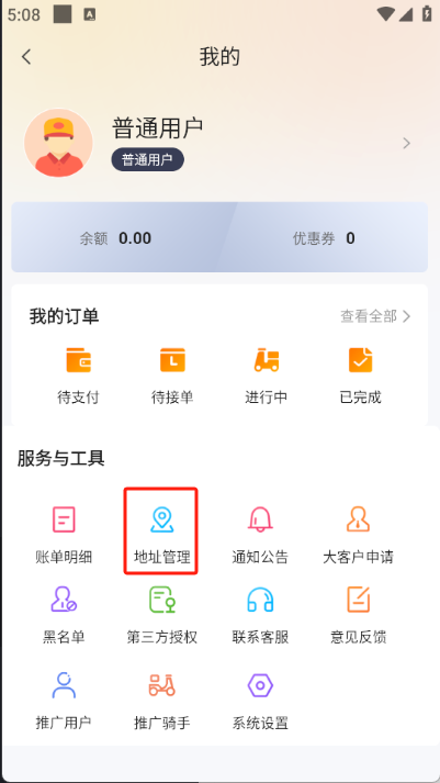 2、点击左上角的头像进入个人中心,再点击“地址管理”选项。