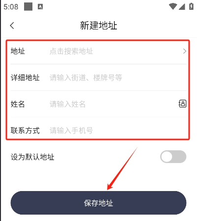 4、输入姓名、联系方式和详细地址,然后保存。