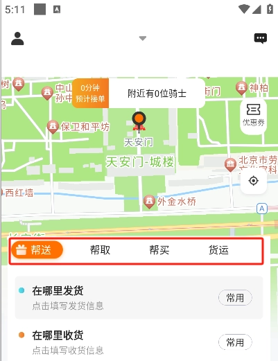 5、挑选所需的服务种类,像代取快递、代拿外卖、帮忙送货之类的。