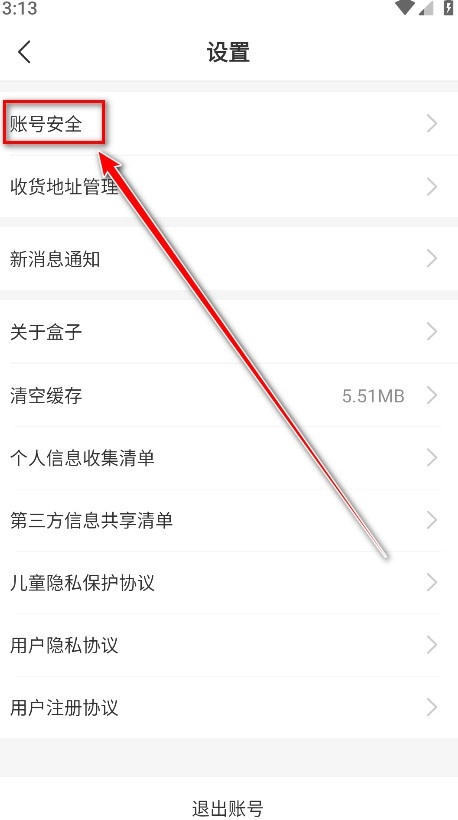 2.点击账号安全。