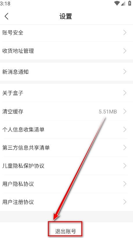 2.点击退出账号。