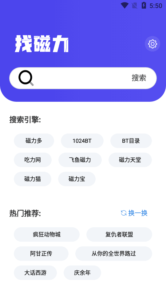找磁力是一款十分可靠的专业线上磁力资源链接搜索工具。这款软件提供了不少资源源头搜索引擎,这个不行还能换另一个。而且找磁力最新版的操作方式很简单,只要输入你想找的资源就能快速搜索,不管是视频、音频、小说还是实用工具等各类资源,都能在线搜索到!