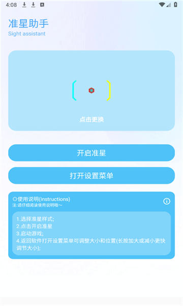 6、提供多种准心样式供选择,开启准星后启动游戏。