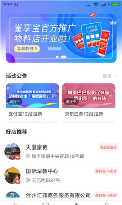 雀享宝是专门面向实体小店的服务类软件,它依托互联网技术为小店提供相关服务,助力中小商家实现转型升级,进而提升商家的收入水平。