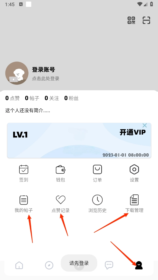 5、最后在我的板块,可以好惨我的帖子、的资源和点赞记录等。