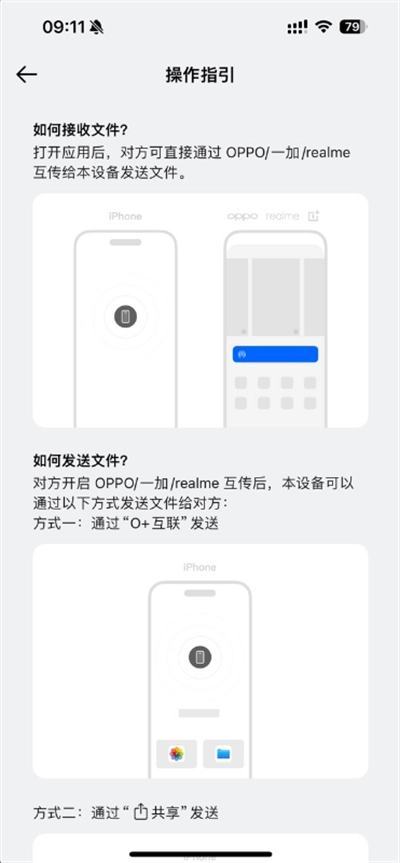1.这是一款支持OPPO、一加和realme手机与苹果设备之间免流量传输文件的工具。