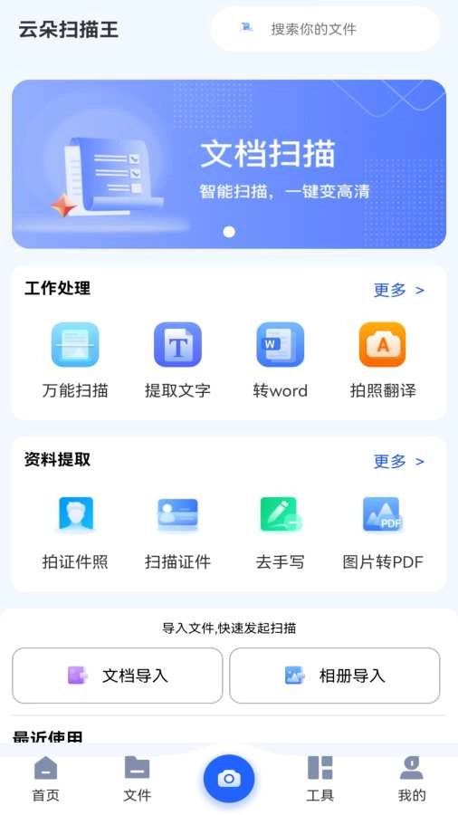 云朵扫描王整合了文字识别、手写识别、文件扫描、证件扫描、表格识别等在内的多种扫描与处理功能。