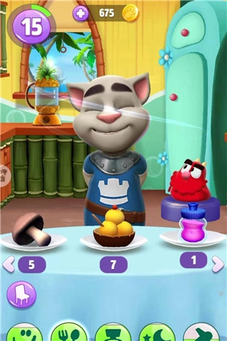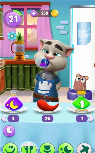购买完成后,药水会出现在餐盘里,这时点击使用,汤姆猫就会喝下药水,接着触发变身特效,就像影视剧中魔法施展时那样,一下子变成萌萌的婴儿模样。