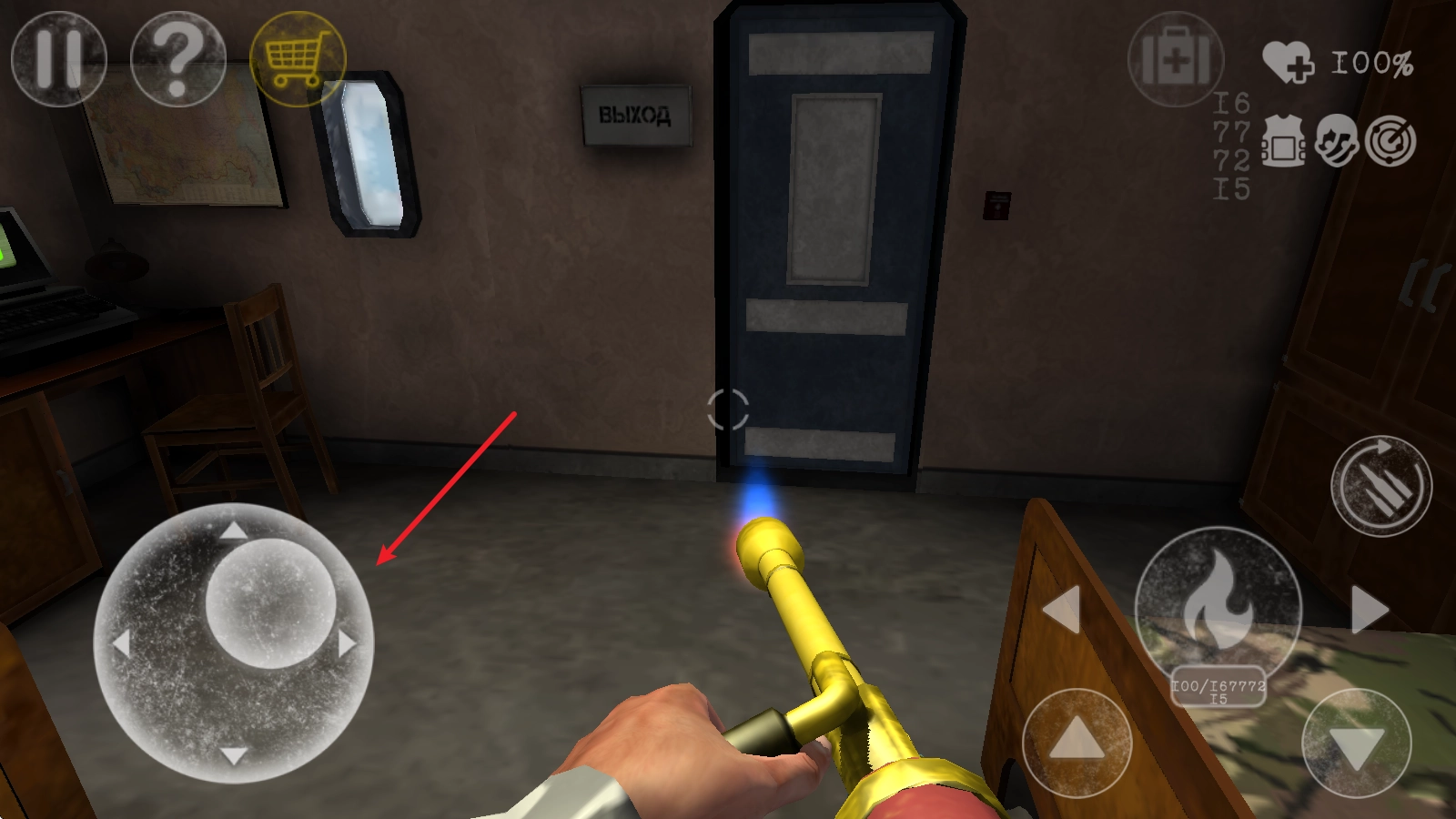 2、进入场景后,我们使用左侧的摇杆控制人物移动。