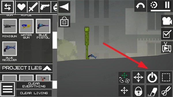 1、第一步先打开武器列表,从中挑选一件武器,把它放置在甜瓜人脚边。