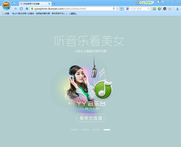 1、打开电脑桌面上的yy浏览器,进入浏览器主页面。