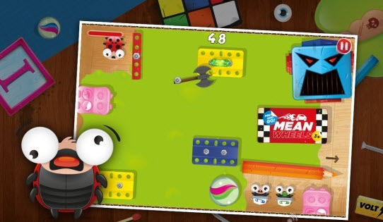 关卡设计方面很有特色,组成这些关卡的都是熊孩子马克斯者学习工具,比如:铅笔、橡皮擦、尺子等等,而那些陷阱则是他的玩具或者工具组成,比如:小斧子、自制的锯片、螺丝刀等等。甚至这个熊孩子还会放入其他昆虫作为敌人,真是让可怜的甲虫苦不堪言啊!