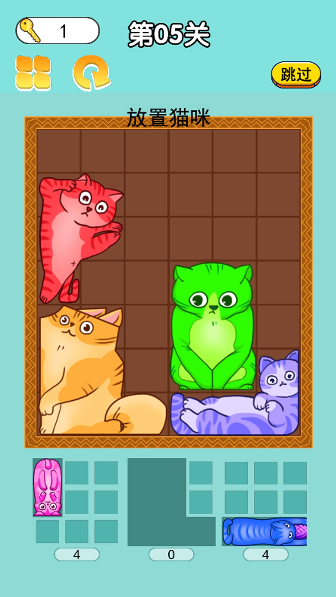 2、这些猫咪是叠加在一起的,把它们组合起来就能完成新关卡,这种玩法挺新奇的。
