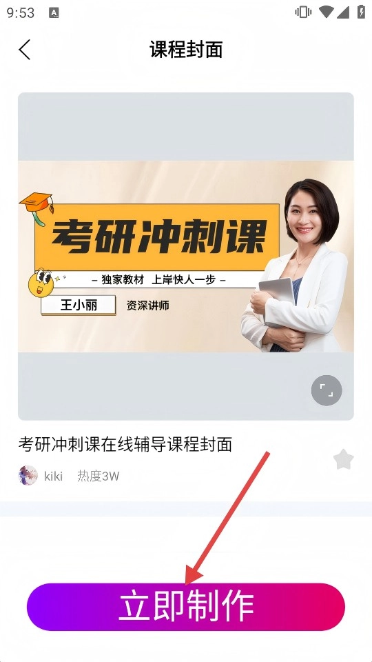 3、进入“考研冲刺课”封面详情页后,点击【立即制作】按钮,即可进入封面编辑界面。