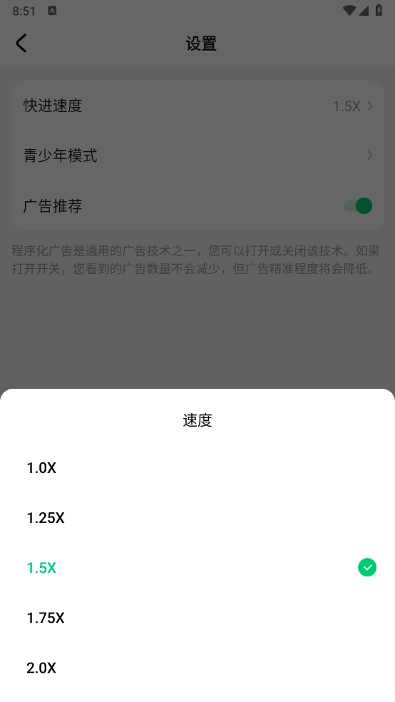 3、选择“快进速度”选项,点击你想要调整的播放速度数值就能完成设置。