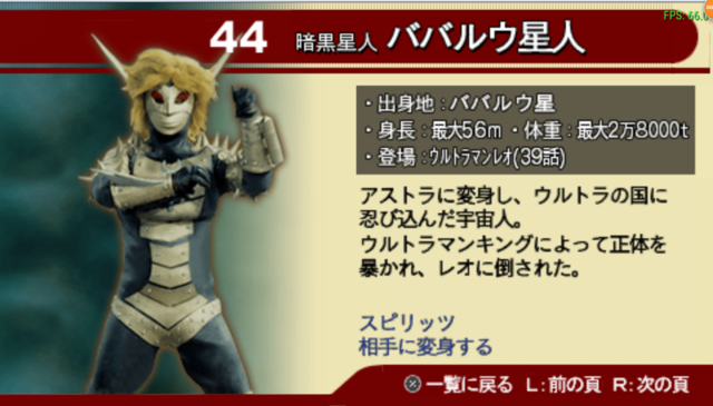 巴巴尔星人先说下游戏里的是雷欧中的初代巴巴尔。个人觉得巴巴尔是怪兽和宇宙人中最好用的角色之一。他的防御力虽然很弱,但可以凭近身格斗来牵制住对手等技能条满后找机会变成对手的样子。一旦变成对手的样子就能使用对手所有的技能,巴巴尔用上阿基拉的精神就更容易打了。
