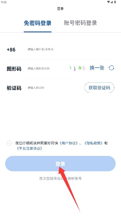 2、在登录界面输入手机号码与短信验证码,勾选同意相关条款后,点击登录按钮即可进入应用。