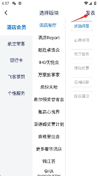 4. 选好要发布的板块后,再次点击右上角的“发表”按钮。