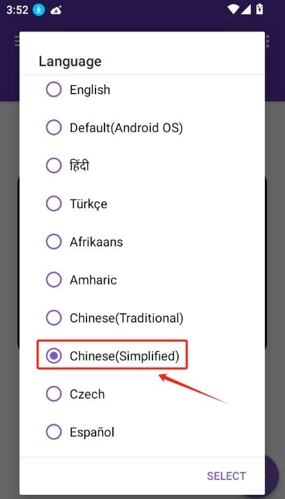 安装完成后,打开1dm+应用时会弹出语言设置界面,在该界面选择“简体中文(Chinese(simplified))”选项即可。