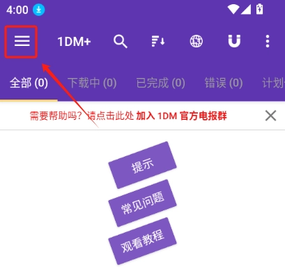 在1DM+的主界面中,点击左上方的三条横线按钮,即可进入设置页面。