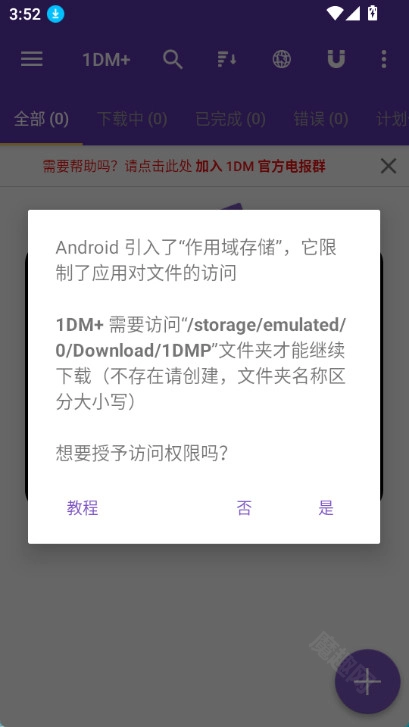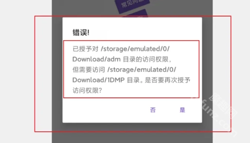 2. 给1DM授予文件访问权限时,要把它能访问的文件夹设为第二步创建的1DMP文件夹。要是没按这个步骤来,可能会出现下图那样的授权失败提示。