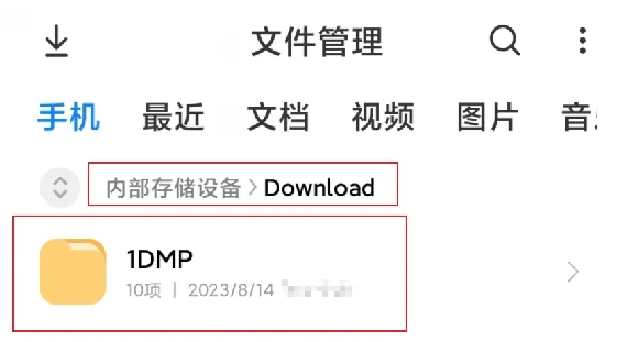 1. 若您的手机运行的是安卓9及更高版本的操作系统,在进行安装操作前,请先在系统存储的/Download目录下新建一个名为1DMP的文件夹。具体的操作步骤可参照下方图示。