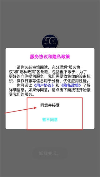 1、在服务协议与隐私政策的弹窗里,仔细阅读相关条款后,点击【同意并接受】按钮,即可进入应用的登录界面。