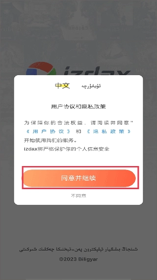在仔细阅读并了解具体的用户协议与隐私政策内容后,点击“同意并继续”按钮。
