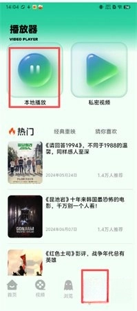 第二步:点击底部的“播放器”选项,接着在页面中找到“本地播放”功能。